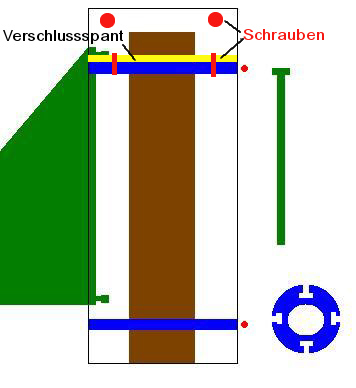 Ich finde, dass die Idee, trotz ihres späten(frühen ) Entstehungszeitpunktes ziemlich gut ist. Doch in einem sehe ich ein Problem, oder versteh nicht ganz was du meinst:Wenn die Finnen über 2 T-Stifte verankert werden, dann muss der Schaft, durch den auch TTW-Balken gehen, über den obersten Spanten anfangen. Sonst könntest du den Stift nicht in den Spanten einführen (oaah, was für ein Verb.. ) ....einsetzen.Wenn das alles ist, dann ist die Finne rel. unstabil, d.h sie kann noch oben verrutschen. Das ganze könnte man dann so realisieren: Dann müsstest du allerdings den Motorbereich vom Rest der Rakete trennen, um die Schrauben für den Spanten einsetzen zu können. Der Motorbereich wird dann mit einem Kuppler, und somit mit dem Rest der Rakete, verschraubt. Gruß, Sven Geändert von Tom am 29. Januar 2006 um 15:27 "Wer die Wahrheit nicht weiß, der ist bloß ein Dummkopf. Aber wer sie weiß und sie eine Lüge nennt, der ist ein Verbrecher." (Zitat aus: Leben des Galilei, Bertolt Brecht) |
