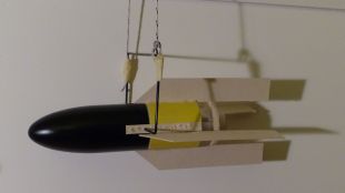Mich hat das Problem der Stabilität noch weiter beschäftigt. Von einem meiner UFOs habe ich noch eine einschiebbare und damit auch verschiebbare Motorhalterung: Vier Finnen waren schnell auf ein entsprechendes Körperrohr geklebt und eine Spitze auch vorhanden. Auf das Körperrohr wurden noch Pappstreifen geklebt, so dass für einen Schwingtest ein Bügel in verschiedenen Positionen aufgesetzt werden konnte, Damit hatte ich ein Modell im Maßstab 1 : 2,5: Die Motorhalterung incl. Motor konnte ich so verschieben, dass der Schwerpunkt etwa an der von OpenRocket ermittelten Stelle lag. Mit dieser Konstruktion machte ich einen Schwingtest und der verlief super! OpenRocket scheint in diesem Fall also nicht ganz richtig zu liegen. Natürlich ist das noch nicht hinreichend und ergibt zunächst nur eine Tendenz. Es stimmt mich aber zuversichtlich, das beim echten Modell hinzubekommen. Ich werde also jetzt erstmal keinen weiteren Ballast in die Spitze gießen, sondern das vom Schwingtest abhängig machen. Gruß Achim