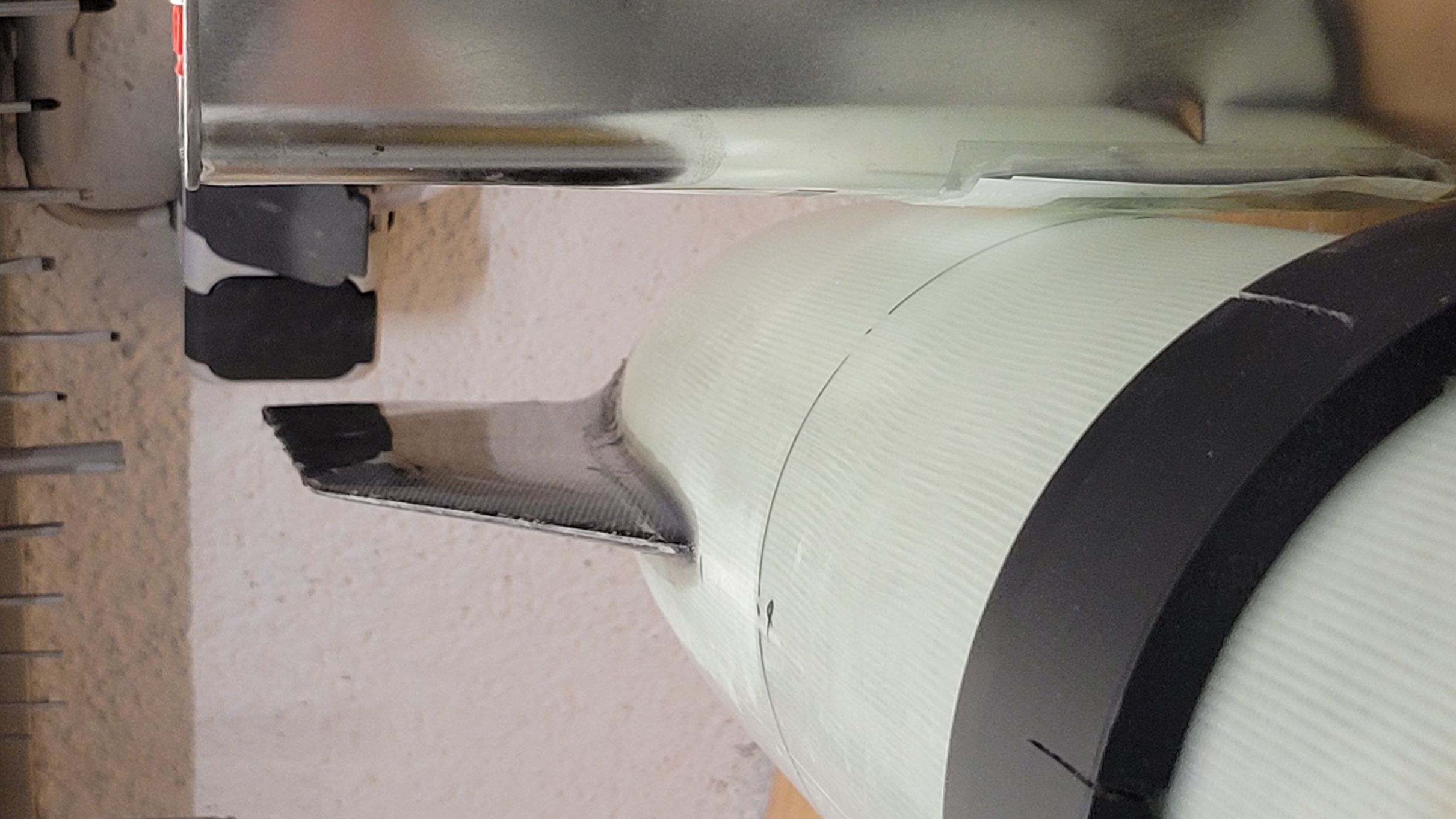 Zwei Faktoren haben hier mitgespielt - die Entlüftungslöcher (Größe und Positionierung) und die Oberfläche der Spitze. Elektroniken mit Drucksensor in der Spitze zu verbauen ist nicht ideal, da die Entlüftungslöcher dann nicht an einem geraden Stück Rohr platziert werden können und schneller Verwirbelungen etc. zu stärkerem Rauschen in den Druckdaten führt. Die Elektronik filtert sowas (hoffentlich ausreichend) und erkennt den Gipfelpunkt weiterhin zuverlässig genug für die Bergung. Ich war mir nicht sicher wie groß die Entlüftungslöcher sein sollten, habe daher das Volumen der Elektronikkammer grob berechnet und die gängigen Faustformeln darauf angewendet. Herausgekommen sind erstmal riesige Löcher... also habe ich das Volumen reduziert indem ich einen weiteren Spant eingebaut habe, der den vorderen Teil der Spitze von der Elektronikkammer abdichtet (s. Bilder). Trotzdem waren die berechneten Löcher echt groß, am Ende habe ich 6 Stück à 3,5mm gebohrt. Sah auch nicht schön aus... Die Oberfläche der Spitze war an an der Trennfuge der GFK-Form auch nicht schön, da habe ich ein paar Luftblasen einlaminiert die am Ende noch als Krater in der Oberfläche übrig waren. Die haben definitiv für einen Haufen Verwirbelungen geführt, welche sicherlich auch an den Entlüftungslöchern Einfluss hatten. Das abgetrennte Volumen im vorderen Teil der Spitze hatte keine eigene Entlüftung. Was sagten die Höhenmesser? Der Altimax Simply hat eine maximale Höhe von über 600m erkannt (unrealistisch), der SALT gab 366m aus (realistisch) und vor Ausstoß einen scharfen Höhenabfall (=Druckanstieg), als wäre die Rakete von jetzt auf gleich 20-30m gefallen und das auf dem Weg zum Gipfelpunkt... komisch! Meine Vermutung ist daher, dass das Entlüftungsloch nah am Simply eines der war, die am meisten Verwirbelung abbekommen haben und, dass die Luft aus dem abgetrennten vorderen Teil der Spitze irgendwann durch die Dichtung in die Elektroniksektion gedrückt hat. Das würde den Druckanstieg erklären den der SALT gesehen hat. Änderungen vor Flügen Nr. 2 und 3 Des Raketeurs Lieblingsaufgaben: Spachteln und Schleifen Jetzt hat die Spitze eine durchgängige glatte Oberfläche. Die großen Löcher wurden verschlossen und durch kleinere (~2mm) ersetzt. Außerdem hat die vordere Sektion 3*1mm Entlüftungslöcher bekommen. Und siehe da: alles g'schmeidig! Beide Altimeter erkennen die gleiche Höhe und den gleichen Gipfelpunkt!