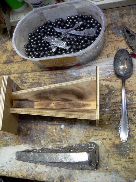 heute ist zwar noch nicht Silvester, aber bei mir war wie gesagt Blei-gießen angesagt. Danke für die guten Tipps, aber so ein großen Aufwand mit Positiv/Negativ-Formen Gips o.ä. habe ich nicht getrieben. Die Gewichte werden sowieso mit Harz in der Kammer eingegossen, da brauchen die nicht so supergerade sein. Ich will nur ganz vorn keinen Platz verschenken, sonst hätte ich auch ganz einfach Bleikugeln im Harz versenkt. So habe ich eine einfache Form aus Holz gebaut, mit Alufolie jedesmal ausgelegt, das Blei im Löffel flüssig gemacht und hinein in die Form. Folgende Datei wurde angehängt: |