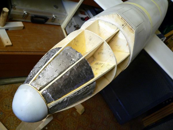 Wie sicherst Du das Blei? Nur Harz reicht möglicherweise nicht, kannst ja die Kammern dahinter noch ausschäumen, falls die nicht anderweitig gebraucht werden. Verschiebt den Schwerpunkt übrigens noch weiter nach vorne ;-)