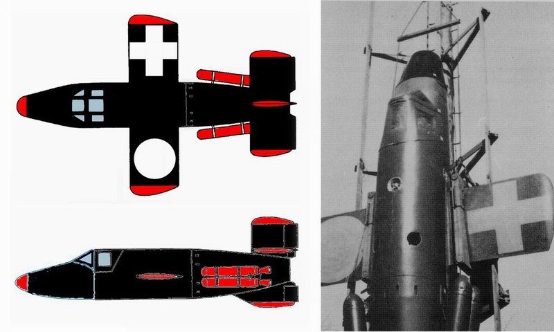ähhm, zu deiner Frage Heiko, es ist keine Farbe, sondern Spritzspachtel aus dem Baumarkt (Autoabteilung) Kurz vor dem Jahreswechsel habe ich mich nun entschieden, wie ich die Bachem Natter "besprühen" werde. Es soll ein Farbdesign werden, was zum einen sehr praktisch ausführbar und später nach "Gebrauchsspuren" bzw. leichten "Blessuren" besser gesagt Landemale  leicht reparabel sein soll. Zum anderen soll es außerdem noch eine scalemäßige Beziehung zum Orginal herstellen. Da kam ich dann auf diese Idee: Scale-Beziehung zum Flug der Mustermaschine Bachem Natter M52 Anfang April 1945. (Der erste unglücklich verlaufene bemannte Start am 1. März 1945 war bereits geschehen) Hier handelte es sich um einen unbemannten Start einer voll ausgerüsteten Einsatzmaschine. Weitere Details erspare ich euch. Fakt ist aber, dass der damalige Flug erfolgreich verlief. So hoffentlich auch mein nächster... Ich wünsche allen Raketeuren einen guten Rutsch und ein gesundes neues Jahr! Möge ein Jeder sein Bauvorhaben mit einem glücklichen Start und einer sanften Landung im kommenden Jahr vollenden. Ciao, Rolli Folgende Datei wurde angehängt: