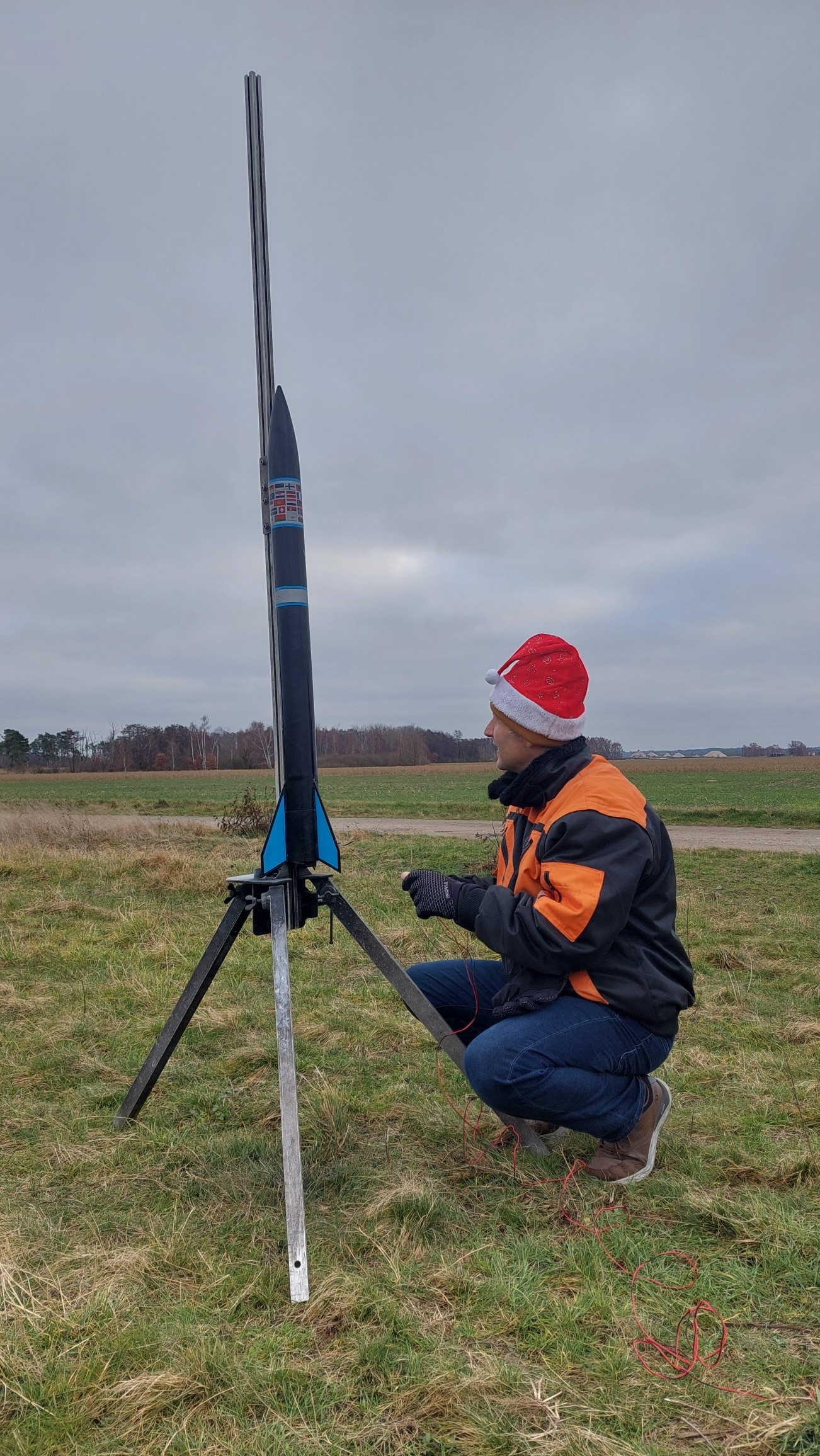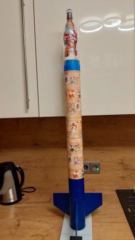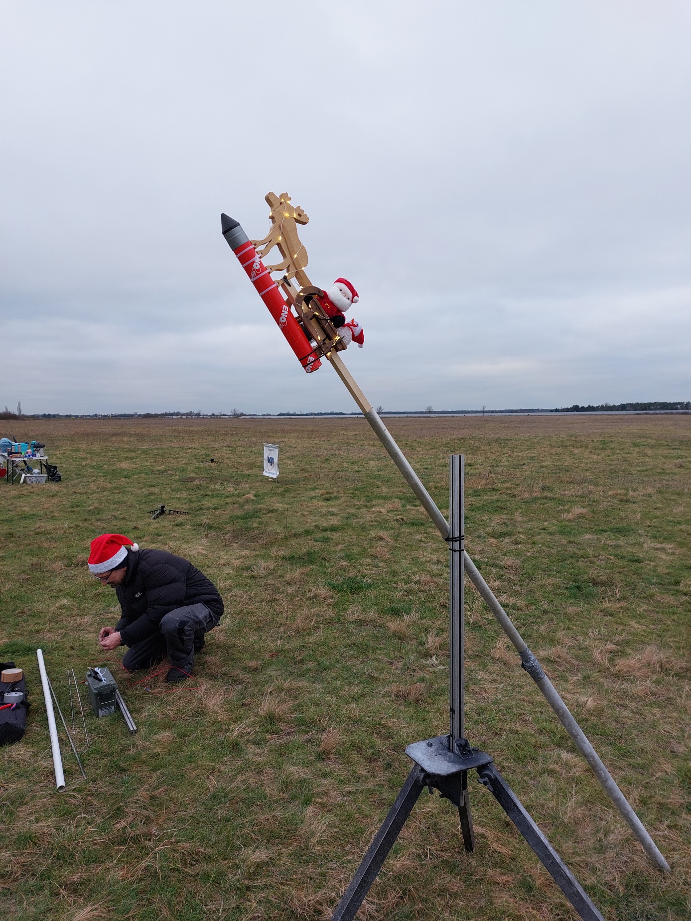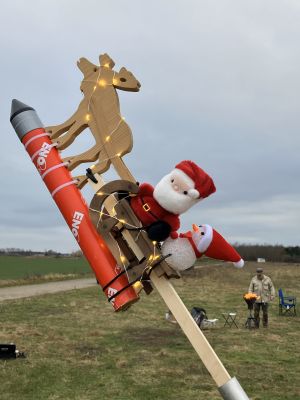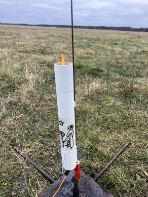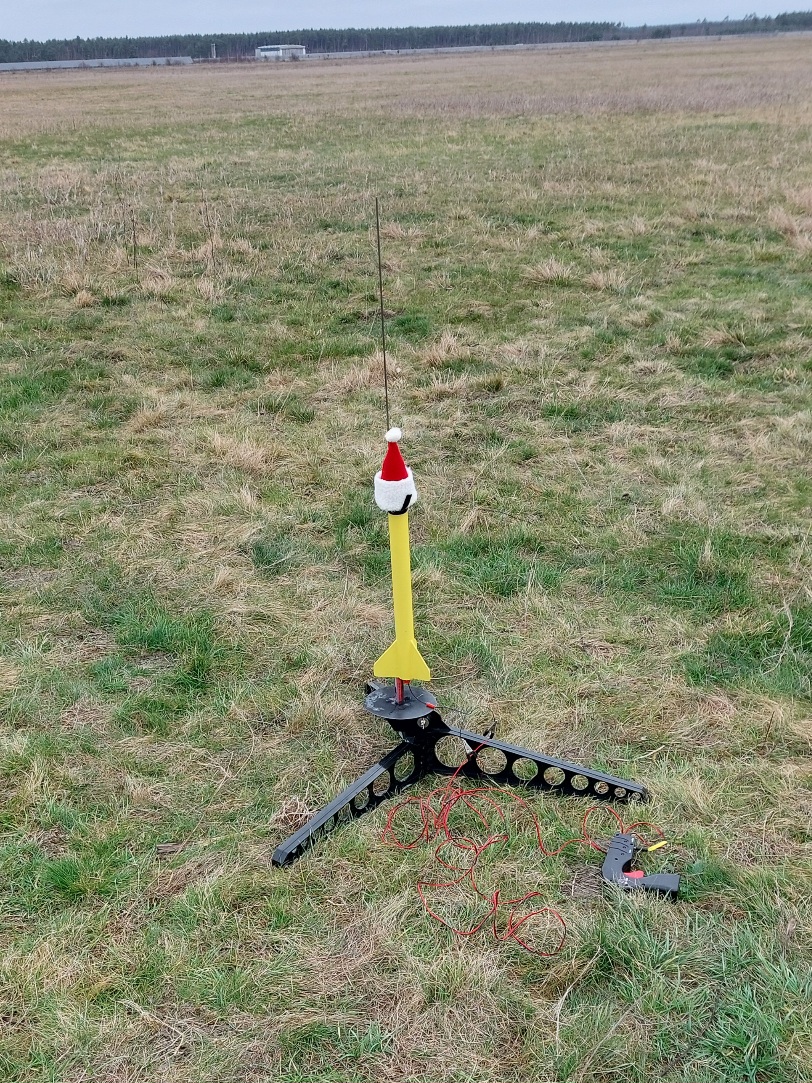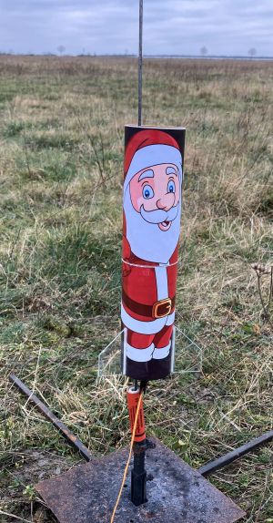 Raketen mit Weihnachtsmützen fliegen gut, aber die Mütze kostetete mehr Höhe als erwartet wodurch die Verzögerung der Ausstoßladung zu lang war, aber gerade noch rechtzeitig vor der Landung den Fallschirm auswarf.