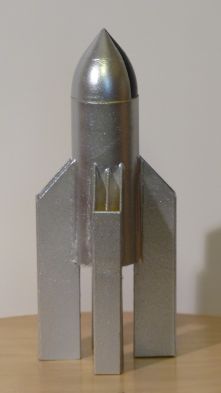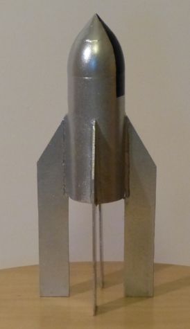 Für meinen 3 1/2 - jährigen Enkel habe ich noch auf die Schnelle eine Version in kleinem Maßstab gebaut. Spitze aus einem Plastik-Osterei und einem geklebtem Pappkegel, Rumpf aus einer Klorolle, Finnen aus Flugzeugsperrholz aus der Abfallkiste, fertig: Ist aber nur Spielzeug, nicht flugfähig. Man muss ja in diesen Zeiten irgendwie mit seinen Angehörigen in Kontakt bleiben. Gruß Achim