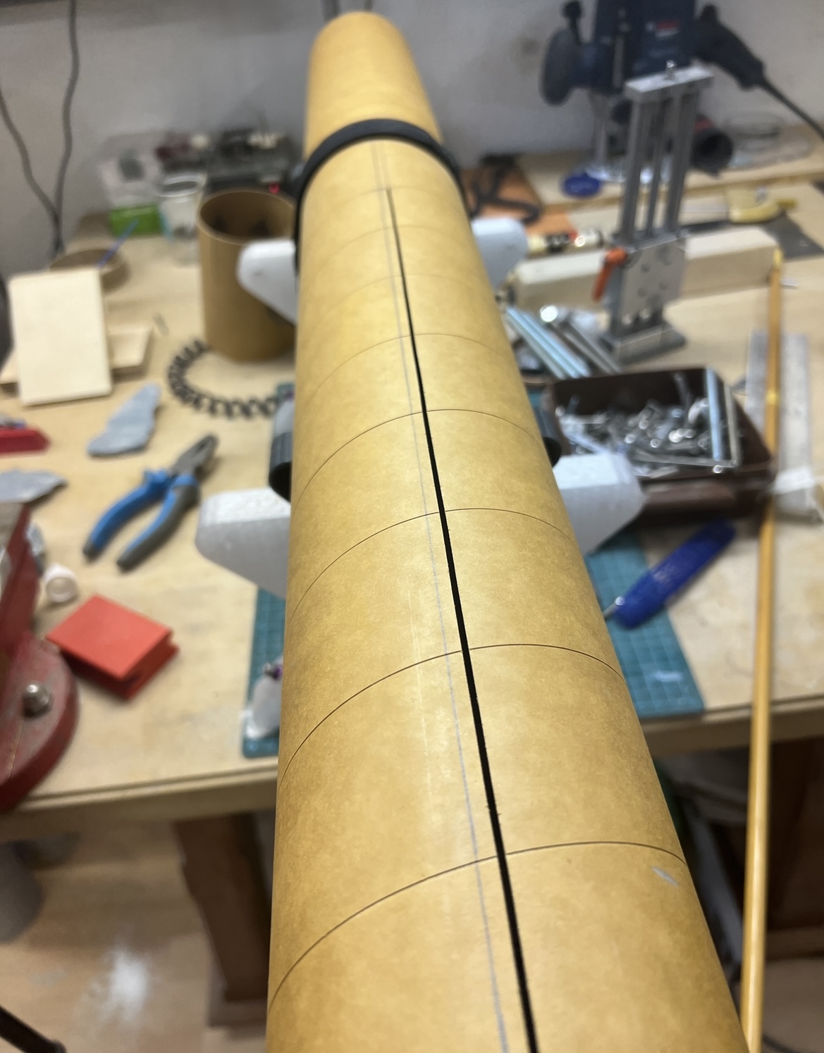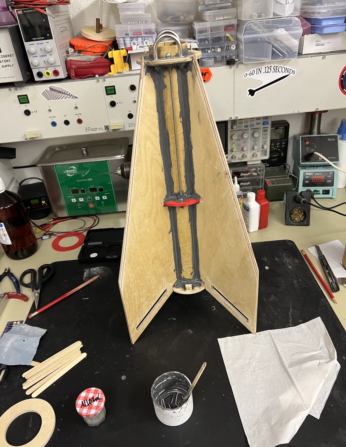 Finnen sind angefast… Habe mit dem Ausrichten begonnen … Ich drucke grade noch ein zweites Fin alignment… um mehr Stabilität in die Fixierung zu bekommen … morgen wird dann geheftet … Grüße Marco