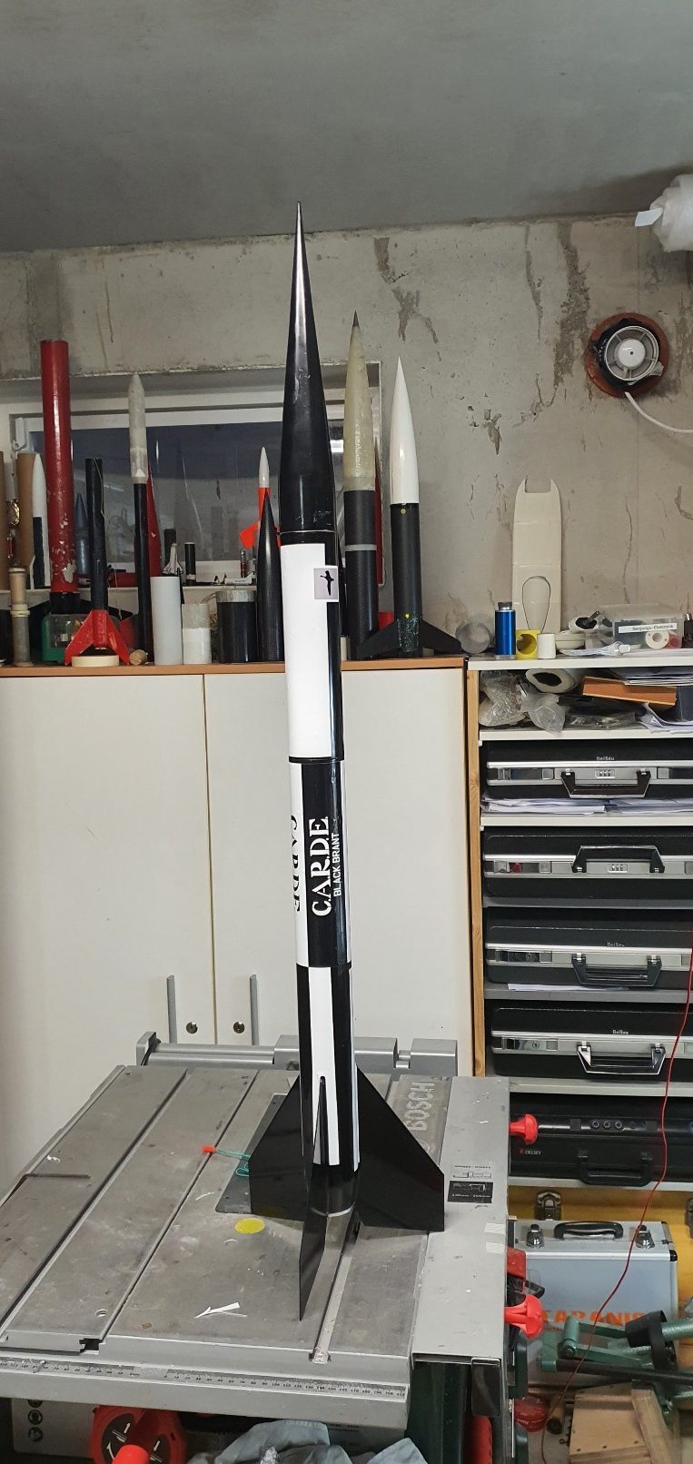 Moin Oliver, Endgewicht ohne Fallschirm 330g. Könnte also auf einem D24 auf 110m regelkonform fliegen. Geht aber auch ein G rein Die Decals sind vom Stickershock23. Ich hab sogar zwei Stück bekommen. Da habe ich noch einen Versuch, wenn die letzten Blasen nicht verschwinden. Gruß Ralf